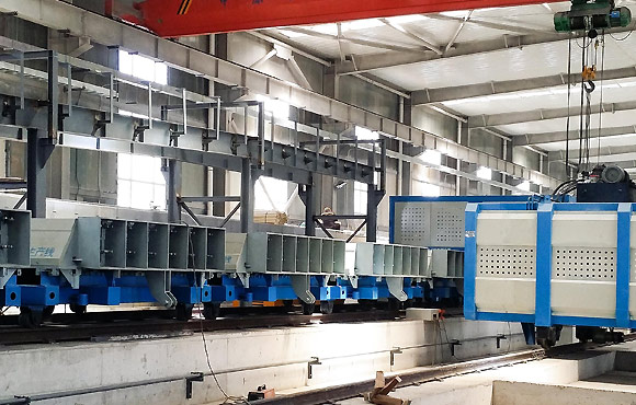 成組立模PC生產(chǎn)線采用成組立模成型技術,模塊化控制,實現(xiàn)新型PC大墻板的工業(yè)化生產(chǎn),通過“大立模+T型架”的子母模技術極大的提高生產(chǎn)效率,解決了現(xiàn)階段PC平模生產(chǎn)線只能生產(chǎn)平面構件的弊端。